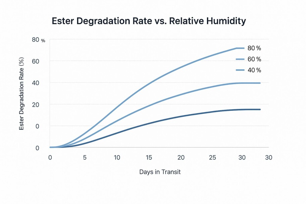 These transformations are not just theoretical. In real logistics chains, temperature swings of 30–40°C and RH (relative humidity) over 70% are common, creating a highly reactive transit environment.