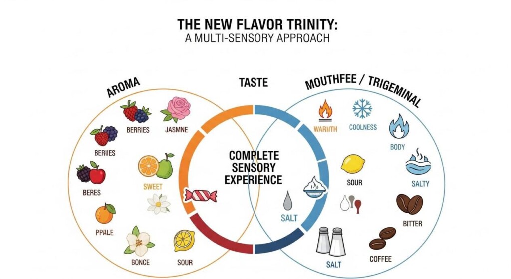 غالبًا ما يتم استخدام مفهوم "النكهة" عن طريق الخطأ مع "الذوق". في الواقع ، النكهة هي ظاهرة متعددة الحواس تشمل: