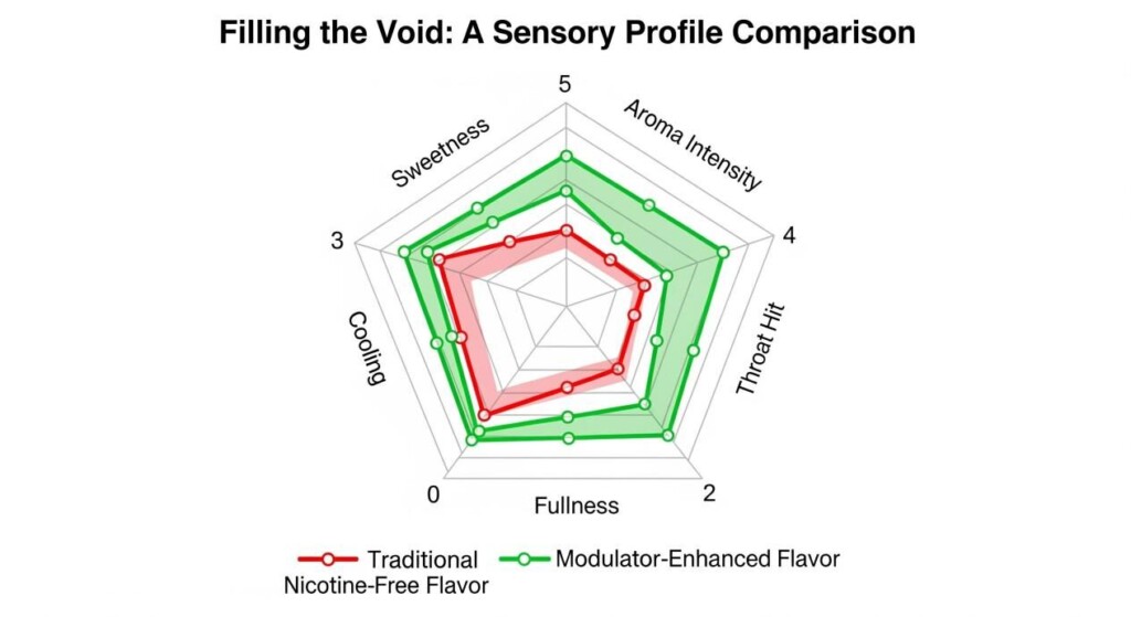ومع ذلك ، فإن الانتقال من منتج قائم على النيكوتين إلى منتج خالٍ من النيكوتين ليس مسألة بسيطة تتمثل في إزالة المكون. إلى جانب خصائصها الإدمانية المعروفة ، تلعب النيكوتين دورًا مباشرًا وهامًا في التجربة الحسية الشاملة. إنه يضفي "ضربة حنجرة" محددة ، فلفل خفي أو ملاحظة مريرة ، ويمكن أن يعزز تصور النكهات الأخرى. ببساطة إزالته يترك فراغًا حسيًا كبيرًا ، مما يؤدي غالبًا إلى منتج يتذوق "مسطح" أو "هولو" أو غير مكتمل بشكل أساسي.