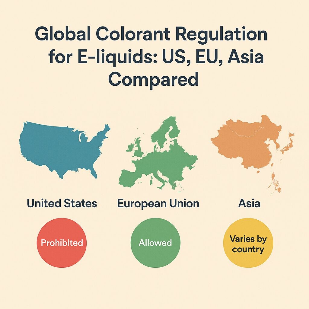 الملونات هي مواد مضافة إلى السوائل لتغيير أو تعزيز مظهرها البصري. في السوائل الإلكترونية ، قد تشمل التلوين مركبات مشتقة من النباتات الطبيعية أو الأصباغ الاصطناعية من الدرجة الغذائية. الأهم من ذلك ، في حين أن هذه الإضافات يمكن أن تجعل عصير vape جذابًا بصريًا ، إلا أنها لا تهدف عادةً إلى التأثير على النكهة مباشرة. ومع ذلك ، فإن التفاعل النفسي بين اللون والنكهة يعني أنها غالبًا ما تكون مرتبطة بشكل غير مباشر في عقل المستهلك.