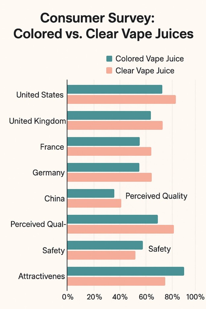 ومع ذلك ، فإن بعض قطاعات المستهلكين-وخاصة الأبوة الواعية للصحة أو ذات الخبرة-قد تربط السوائل الإلكترونية الواضحة مع نقاء أعلى وأداء أفضل وأضرار أقل لفائف.