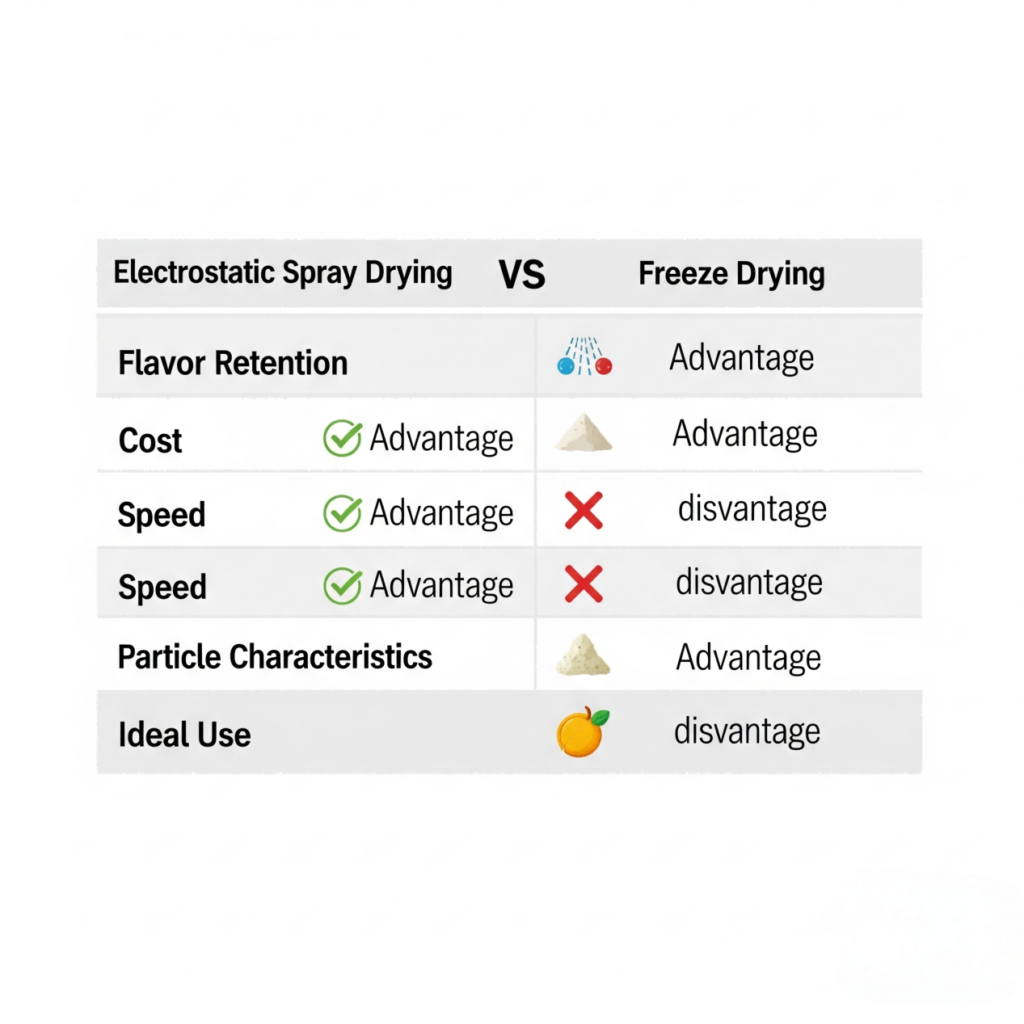 La decisión entre el secado por aerosol electrostático y el secado de congelación para la producción de sabor en polvo es una elección de negocios estratégico. Ambas tecnologías avanzan significativamente en la preservación del sabor, que ofrecen distintas ventajas para diferentes aplicaciones.