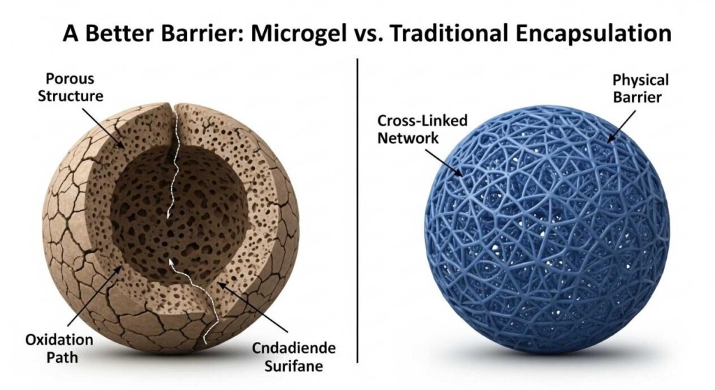 By creating a robust, cross-linked barrier, microgels provide a superior level of protection against all three major forms of degradation.