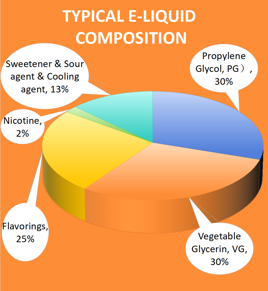 - 酸调节电子液体pH(通常为5.5-6.5),这会影响喉咙命中率和尼古丁吸收率。